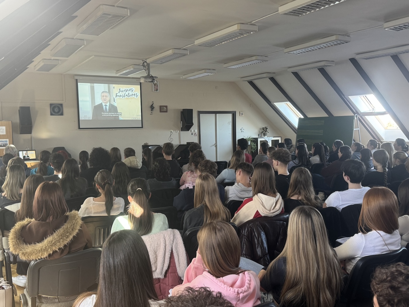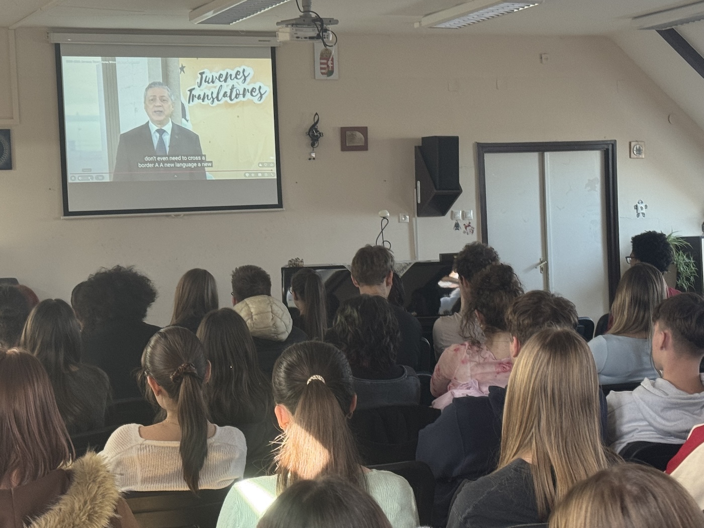 2026. február 12-én a 9-10-11 D spanyolos és németes osztályok élőben követték a Juvenes Translatores fordítói verseny eredményhirdetését. Velünk tartott Spiegl Éva is az Európai Bizottság Fordítási Főigazgatóságáról. A verseny 2025-26-os magyarországi győztese: Tachu Bence, 11D osztályos tanuló, aki spanyolról magyarra fordított a versenyen.